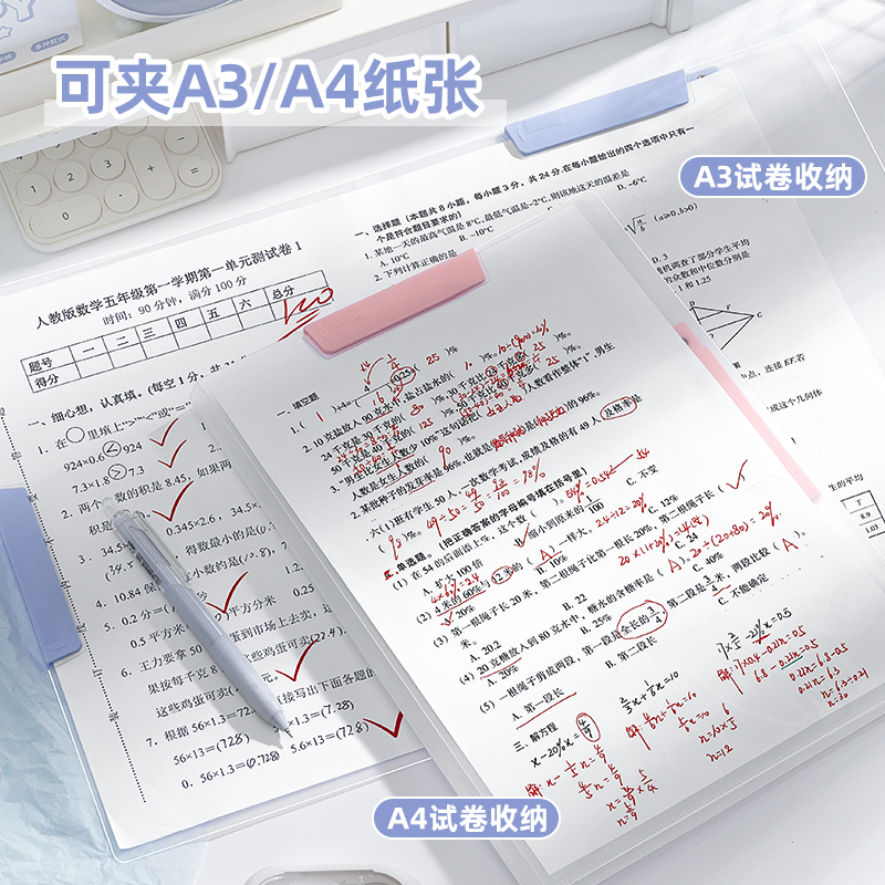 a3双拉杆试卷夹文件夹小学生专用卷子收纳整理神器a4资料夹收纳袋旋转抽杆夹一年级试卷整理夹初中生透明插页
