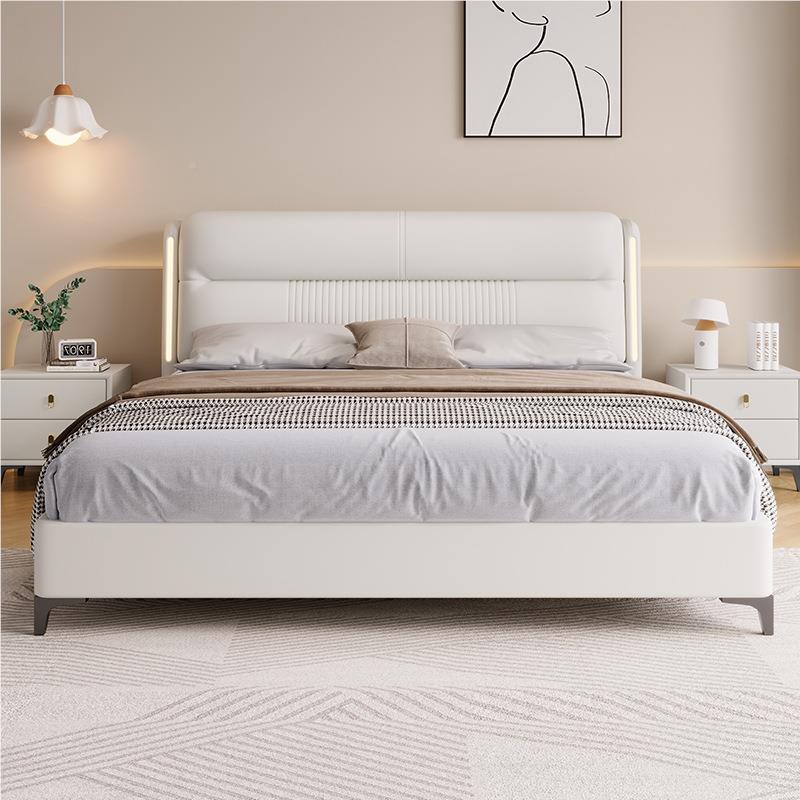 高 端意 式真 皮床现 代简约主 卧双 人床1.8米北欧皮艺床软饰品