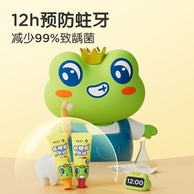 青蛙王子抗糖酸防蛀儿童牙膏3-12岁含氟换牙期防龋齿固齿水果味