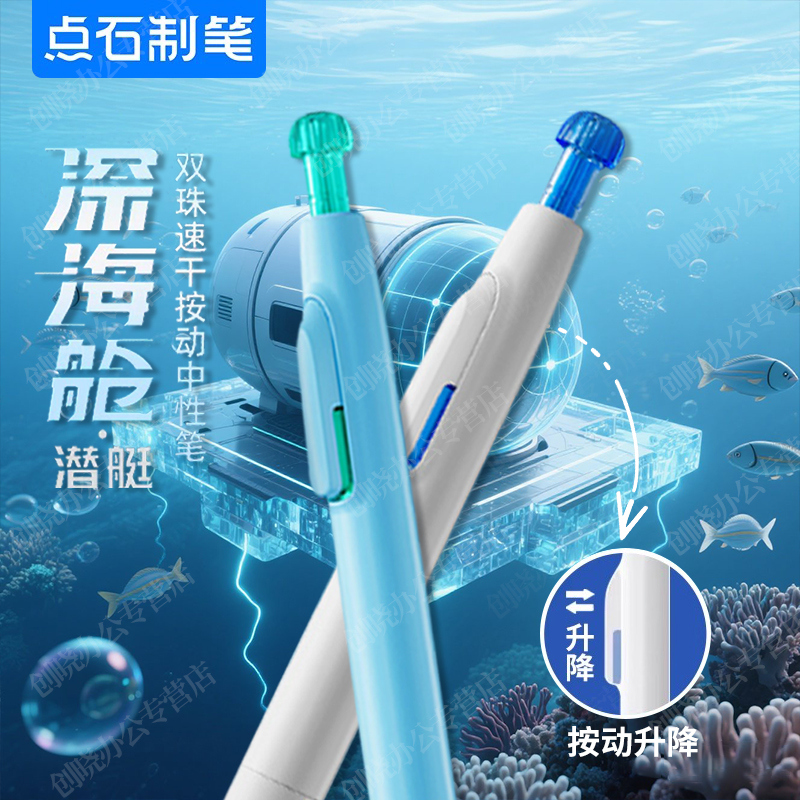 点石深海舱中性笔双珠速干静音时空舱学生书写考试刷题笔海洋潜艇