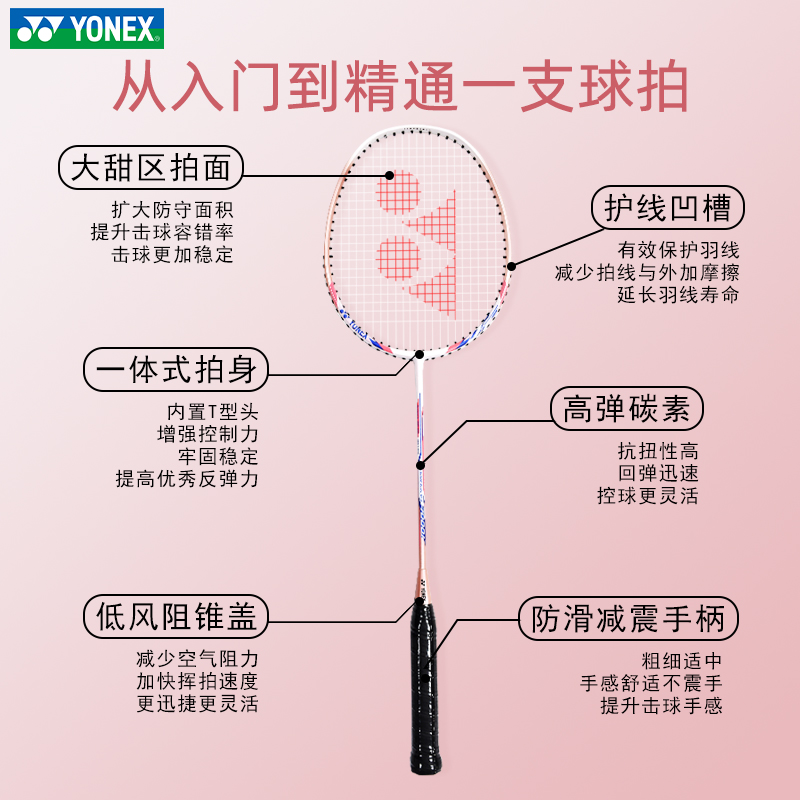 正品YONEX尤尼克斯羽毛球拍全碳素纤维5U双拍套装yy超轻耐用拍子