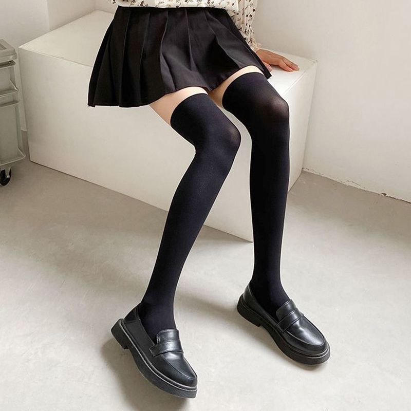 抵达一楼白色薄款微透肉天鹅绒过膝袜硅胶防滑日系jk长筒袜纯色袜