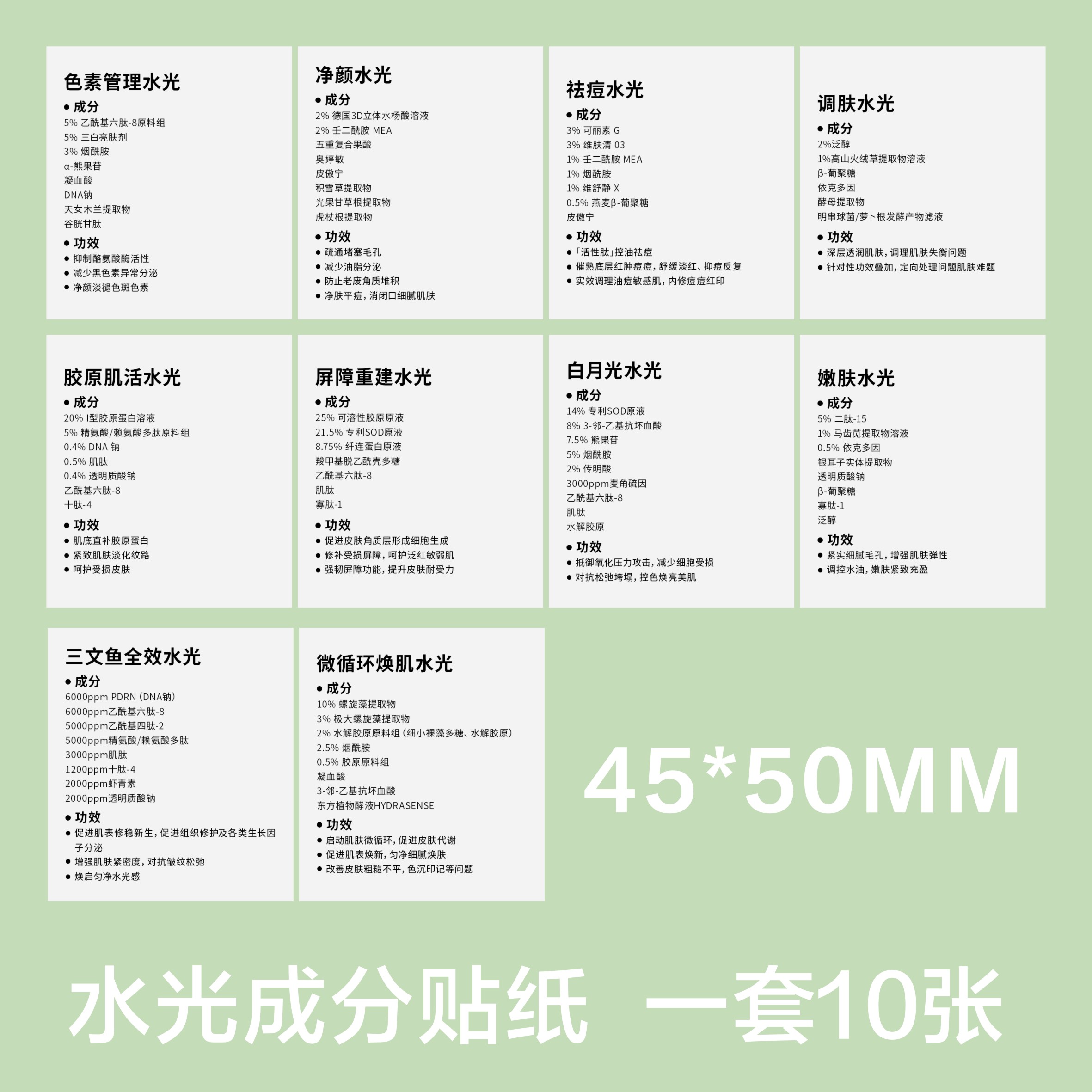 水光成分表贴纸不干胶三文鱼水光弥尚功效水光祛痘水光贴纸不干胶成分表调肤水光白月光水光50张包邮标签