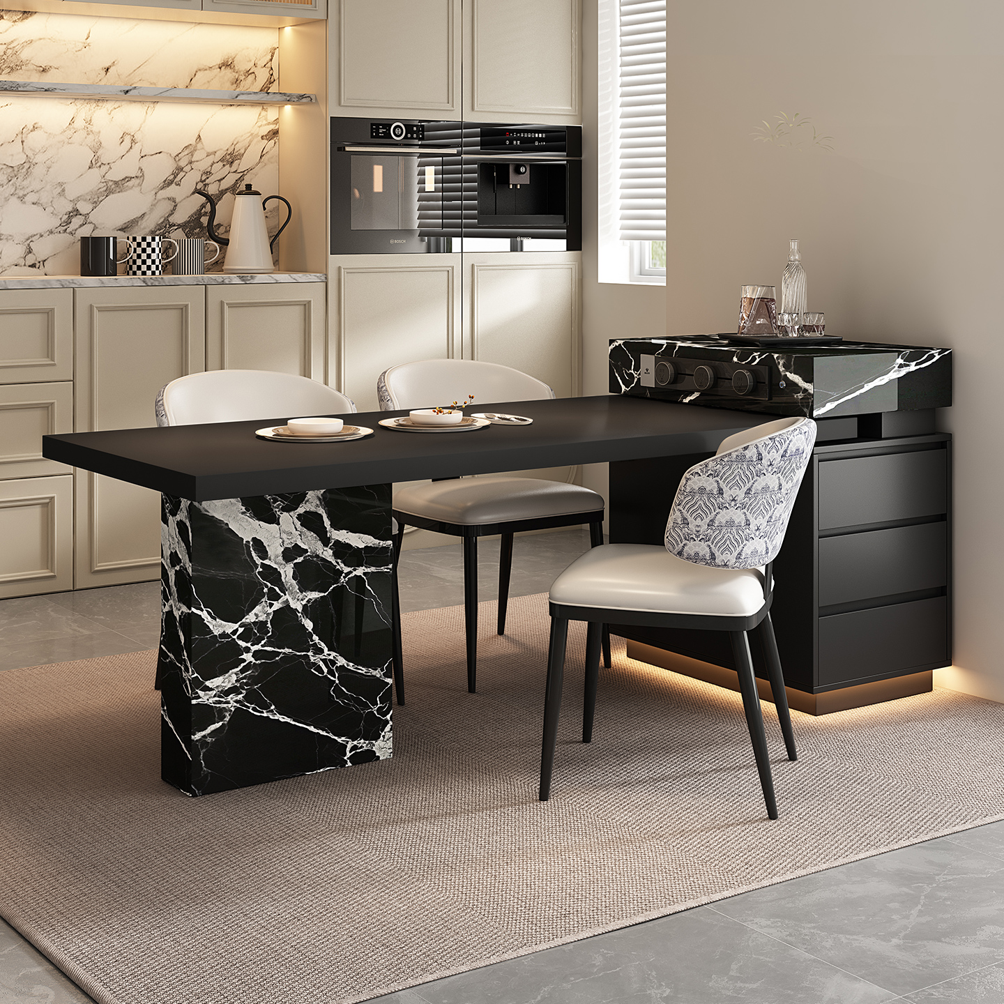 意式轻奢岛台餐桌一体可伸缩开放式厨房岩板窄导小户型迷你吧台