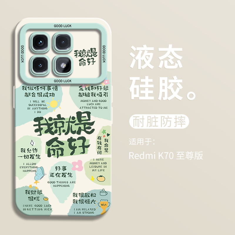 我就是命好文字适用小米红米k70至尊版手机壳红米k70ultra防摔Redmi K70至尊版瞳眼液态硅胶软壳男女个性创意