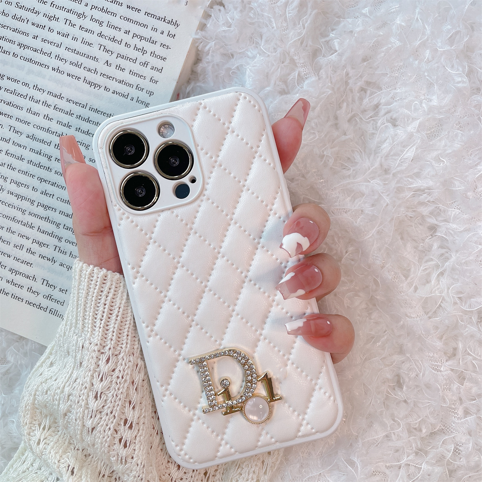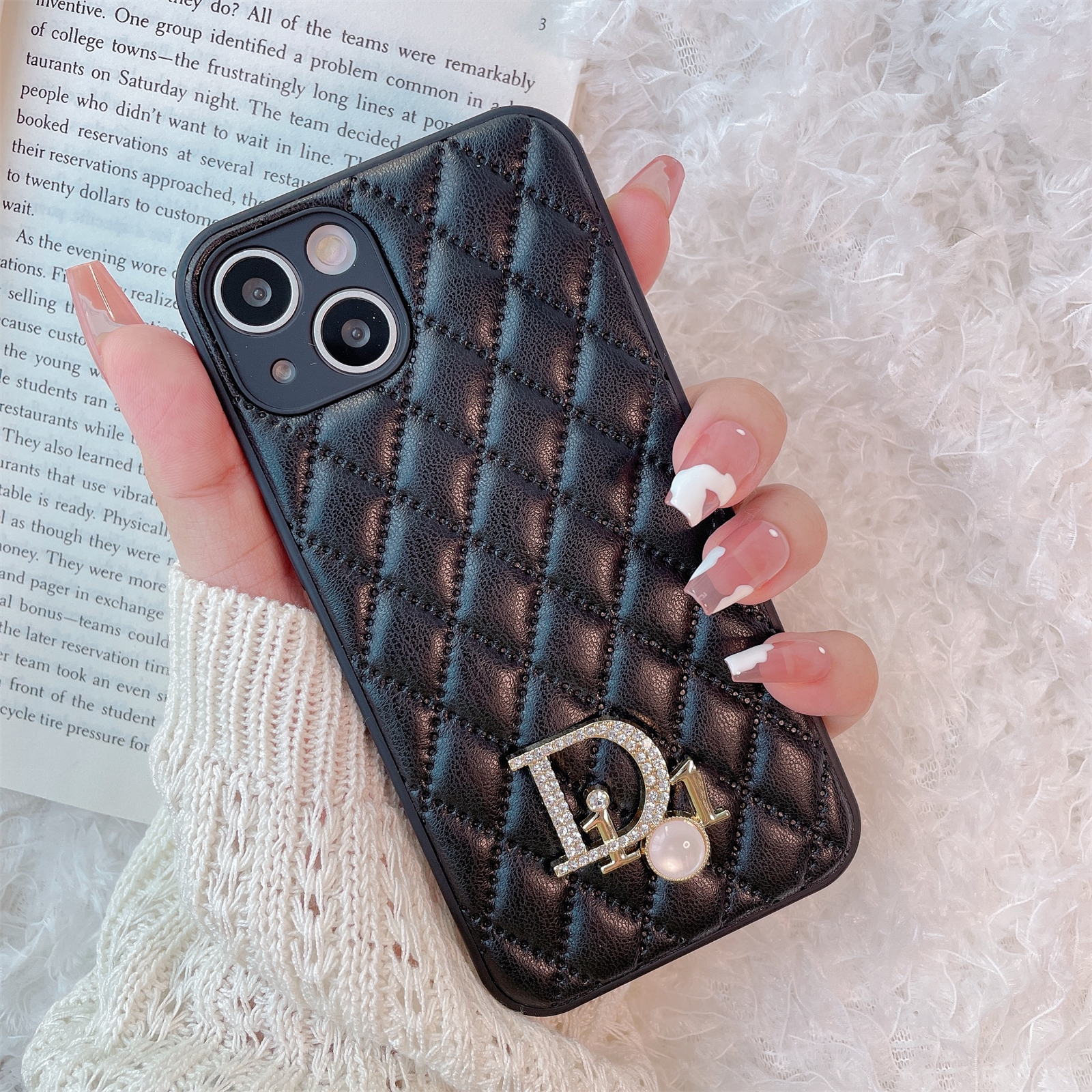 新款16pro潮牌菱格D钻奢华适用苹果14手机壳iPhone13promax皮质12pro全包11保护套15plus防摔软壳高级感名媛
