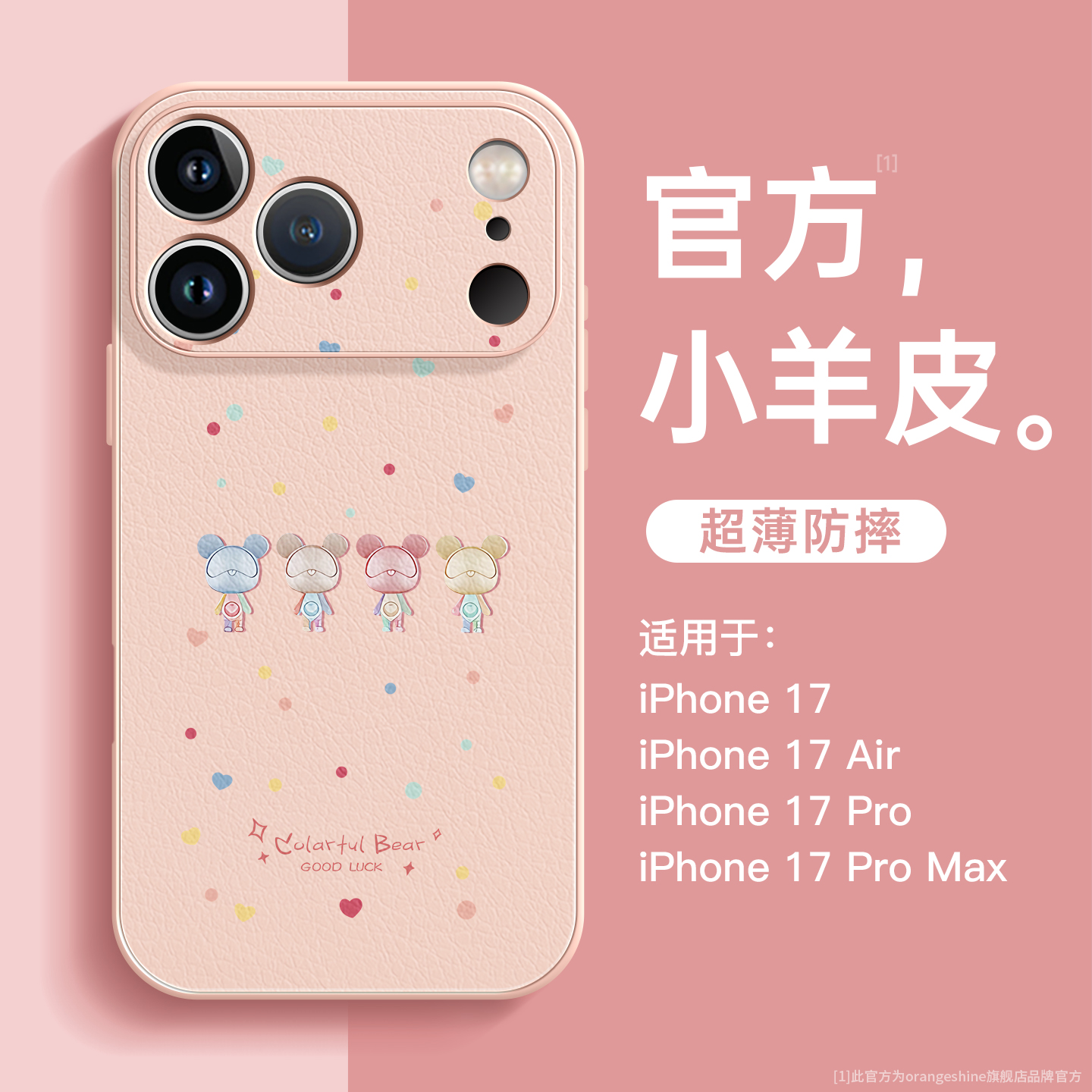 适用苹果17promax手机壳iphone17小羊皮17pro皮质全包防摔套iPhone Air新款17高级感小众可爱女款卡通波点熊