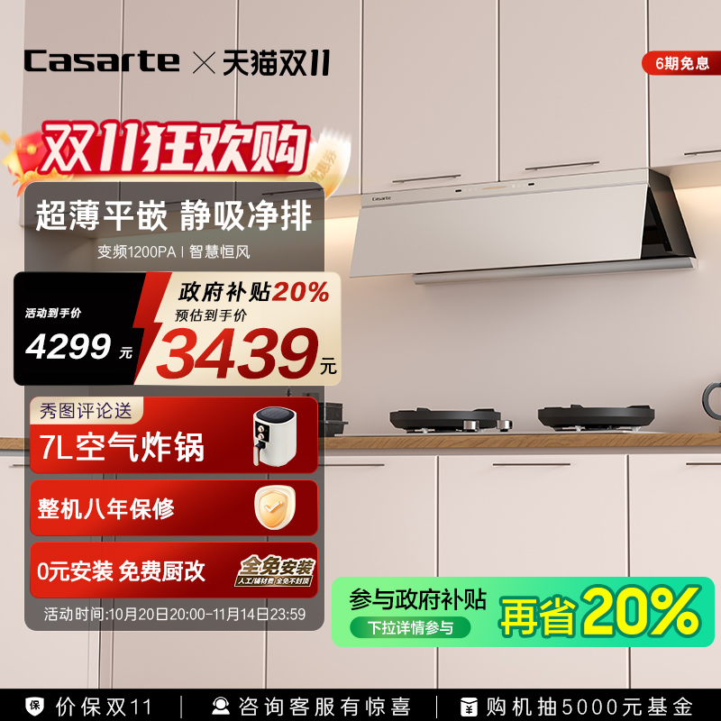 卡萨帝揽光小炫风Y5抽油烟机海盐白色变频厨房家用自清洁以旧换新