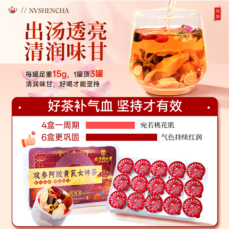 北京同仁堂红参黄芪搭红枣枸杞桂圆女人补气养血调理养生茶信盛堂