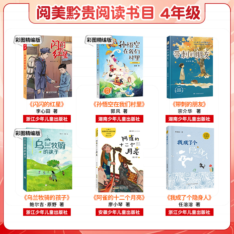 贵州阅美黔贵四年级闪闪的红星彩图精编版阿雀的十二个月亮带刺的朋友乌兰牧骑的孩子孙悟空在我们村里彩图精编版我成了个隐身人