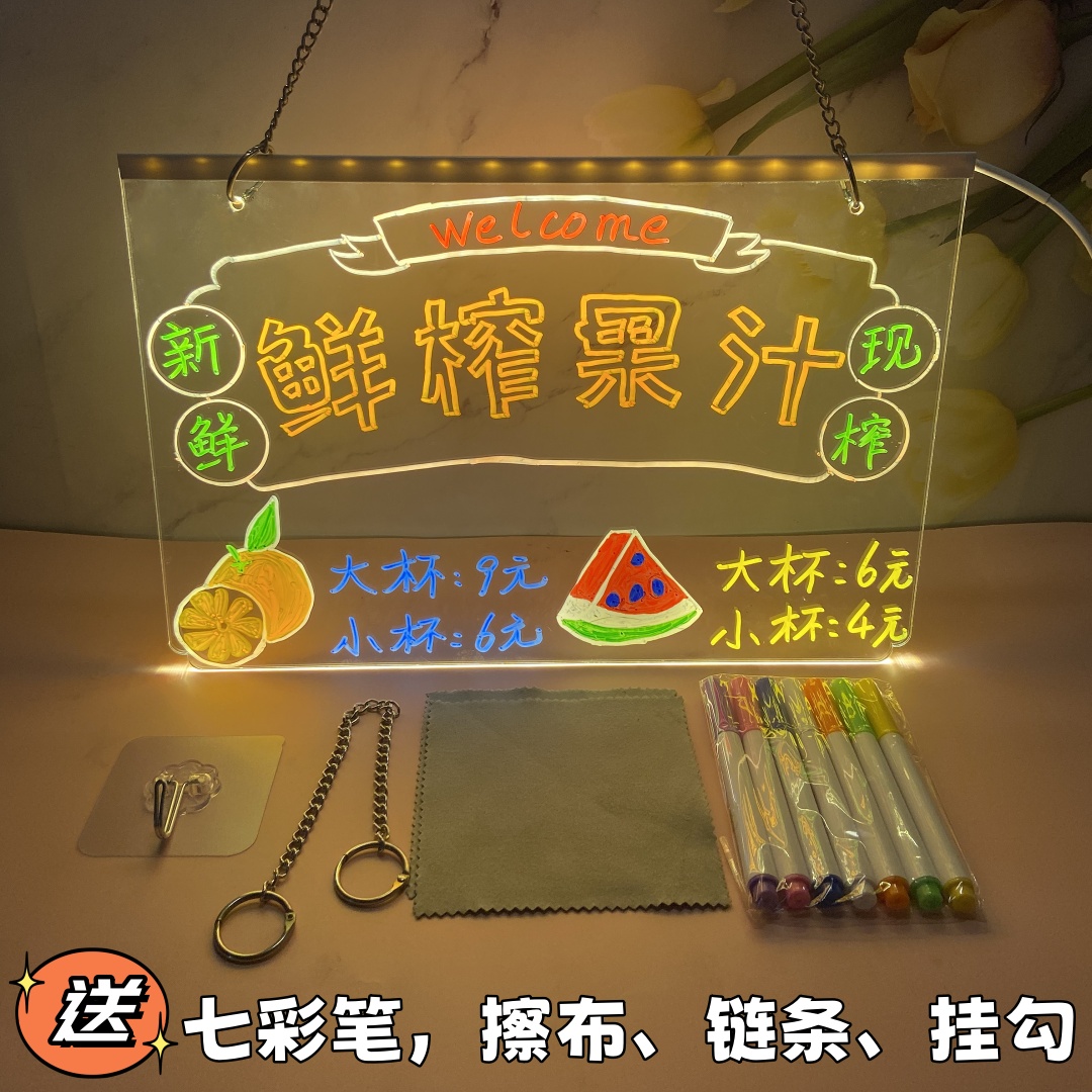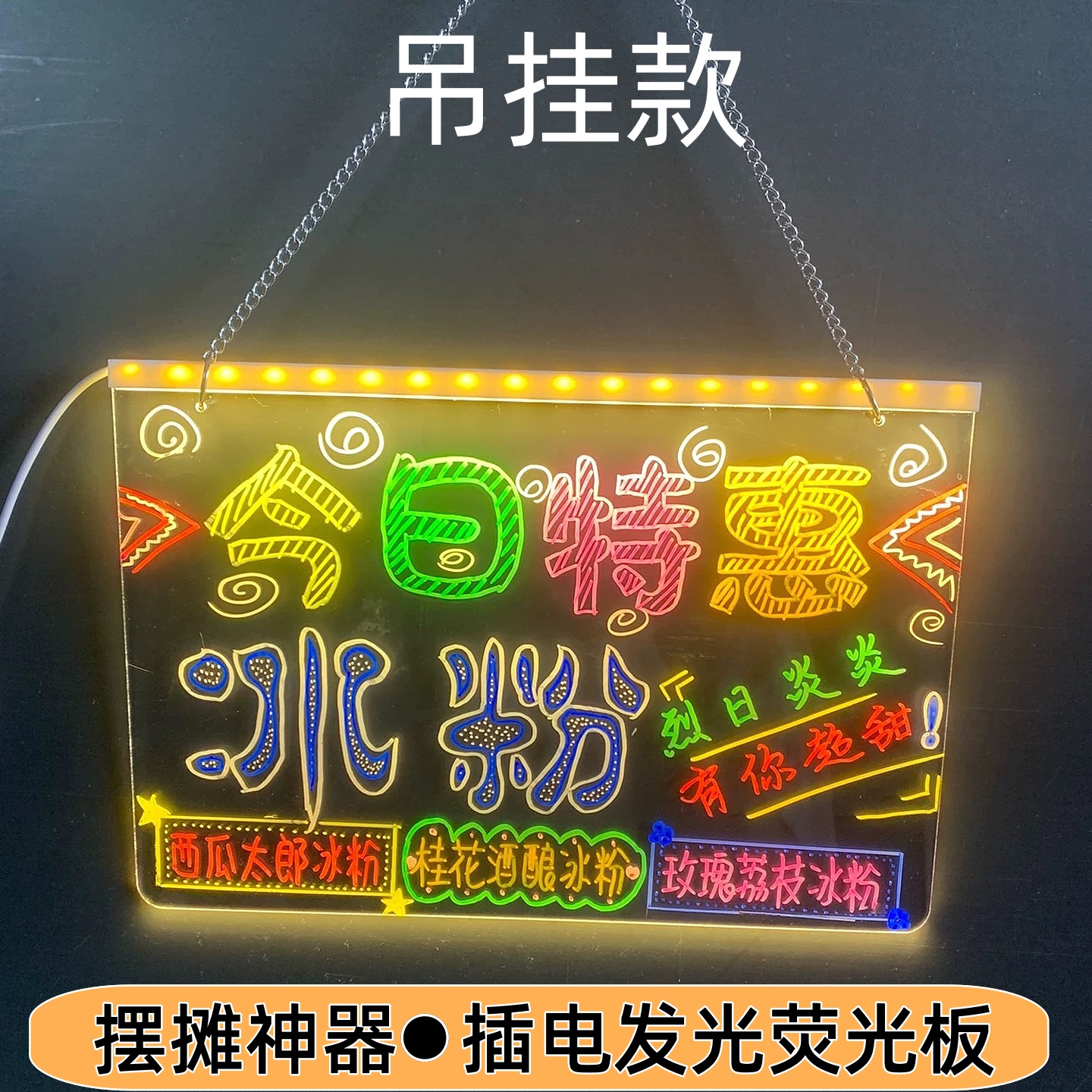 diy可悬挂发光电子荧光板手写绘画写字板亚克力摆摊商用广告招牌