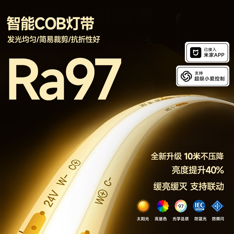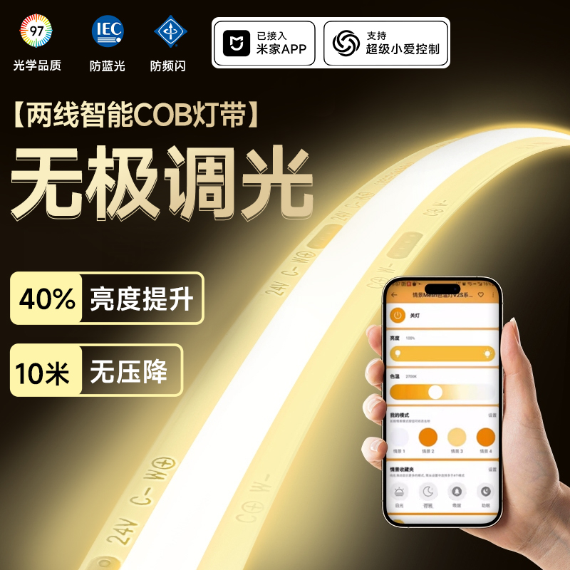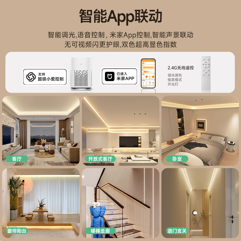 已接入米家APP智能三色防蓝光客厅吊顶嵌入式低压24v自粘cob灯带