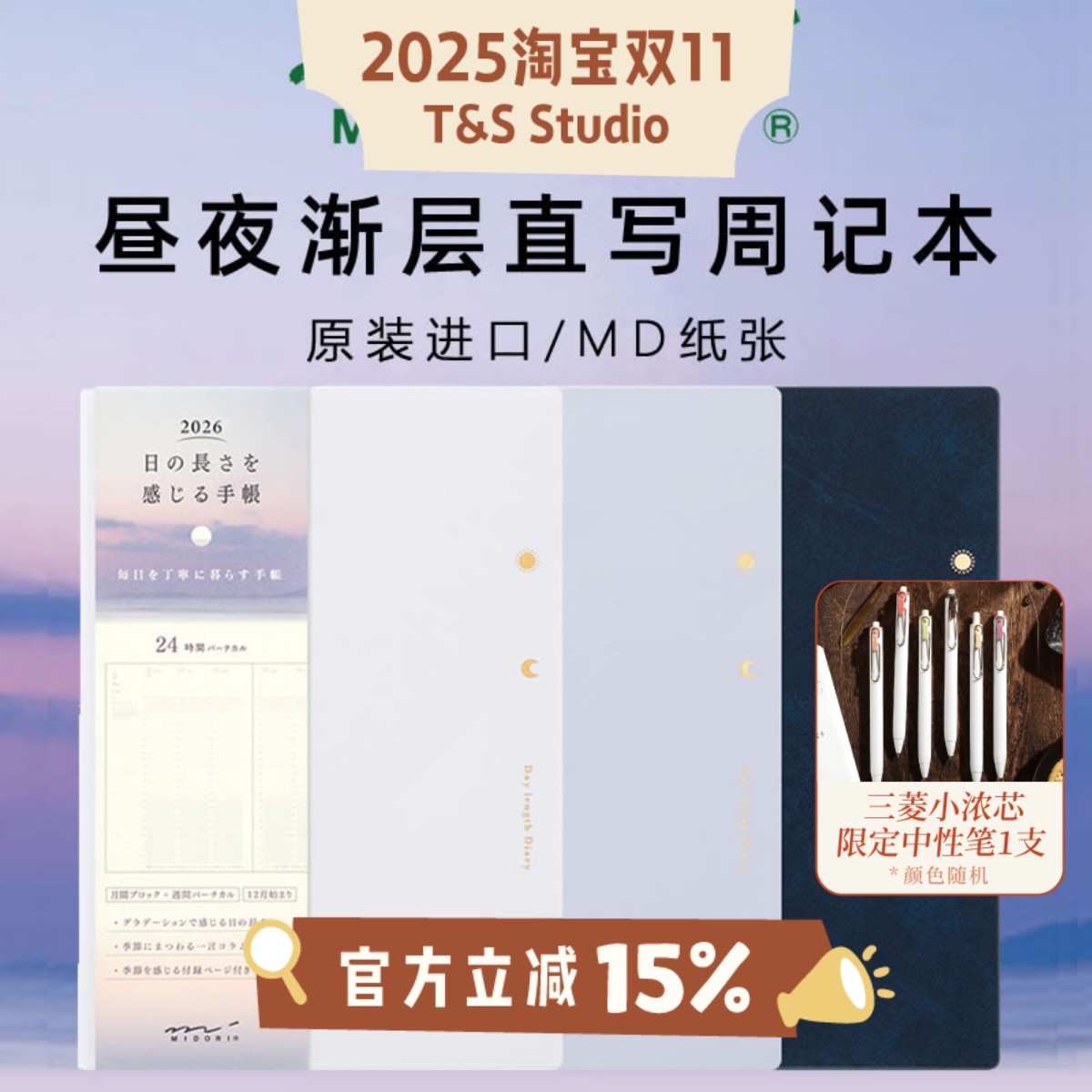 【现货】midori 2026昼夜渐层手帐时间周计划本B6月相24小时渐变