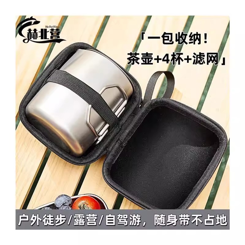 户外不锈钢露营茶具快客杯钛化合金茶水分离泡茶器旅行套装中国风