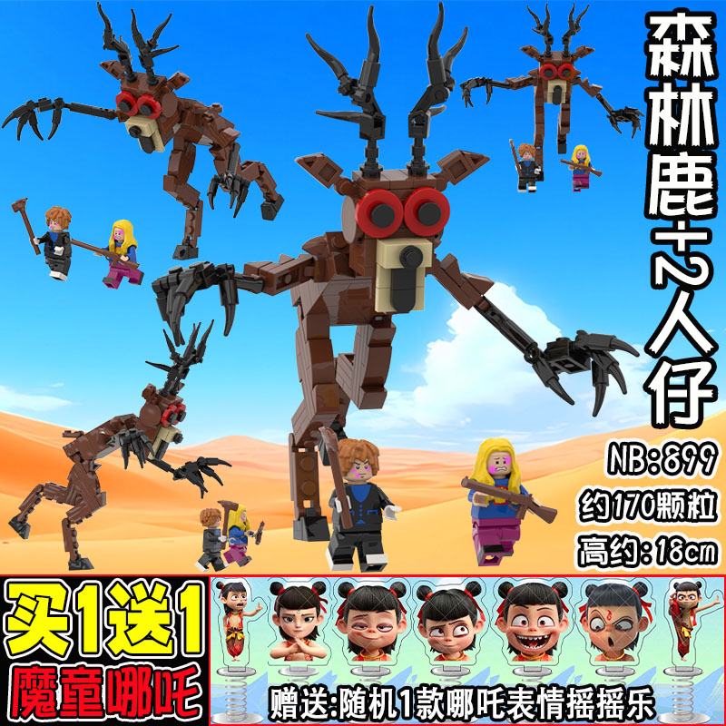 新品森林中99夜积木生存游戏丧尸鹿暗夜猫头鹰拼装模型玩具礼物男