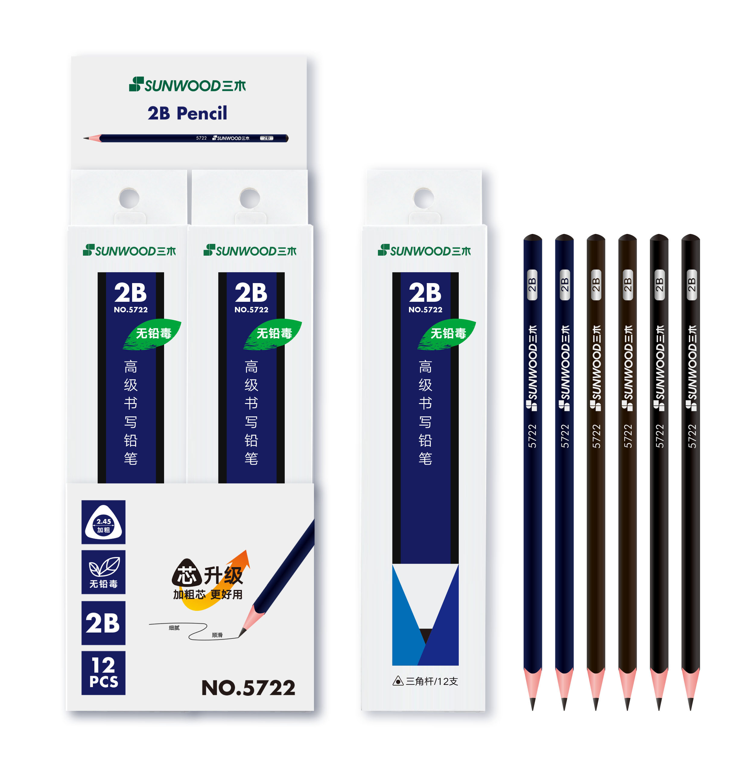 原木桶三木5721HB学生铅笔12支/盒环保健康买二送一