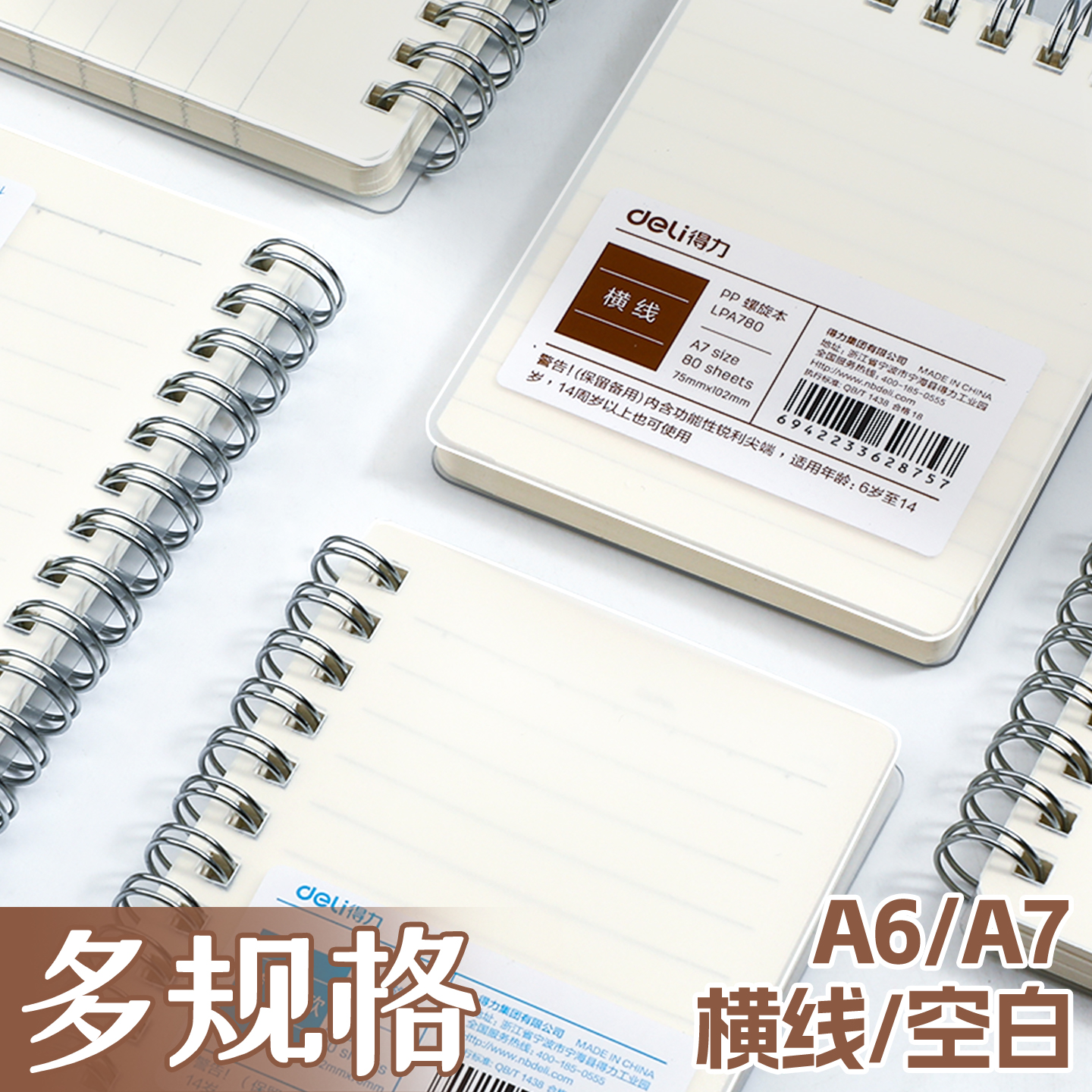得力A7线圈口袋本便携A6迷你小笔记本子加厚内页360度翻转横线打卡本时间管理单词计划随手记学生职场随身本