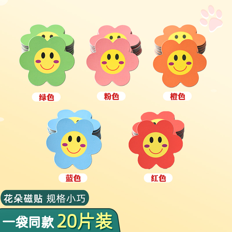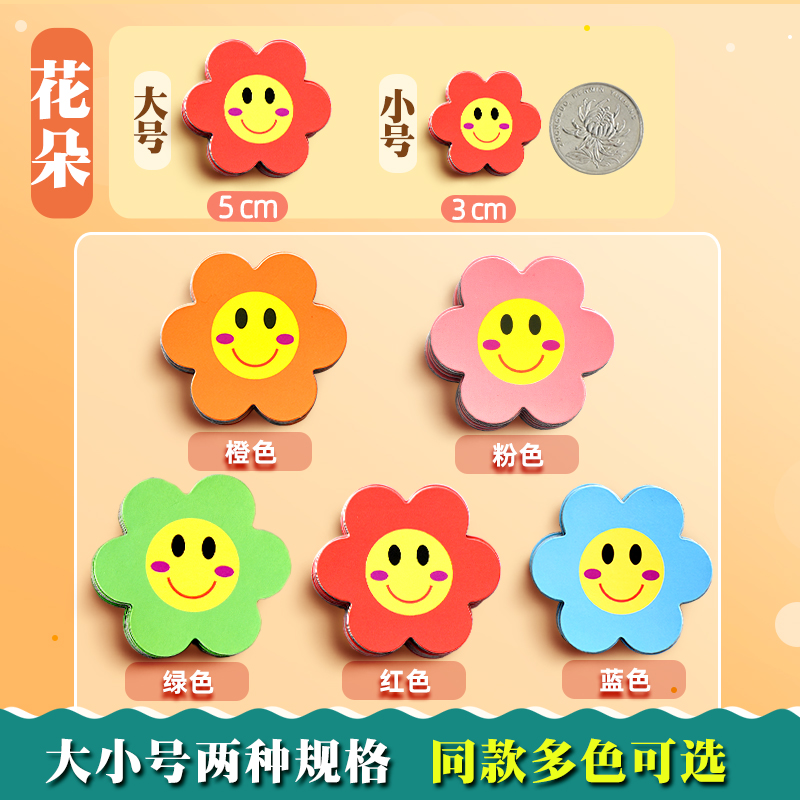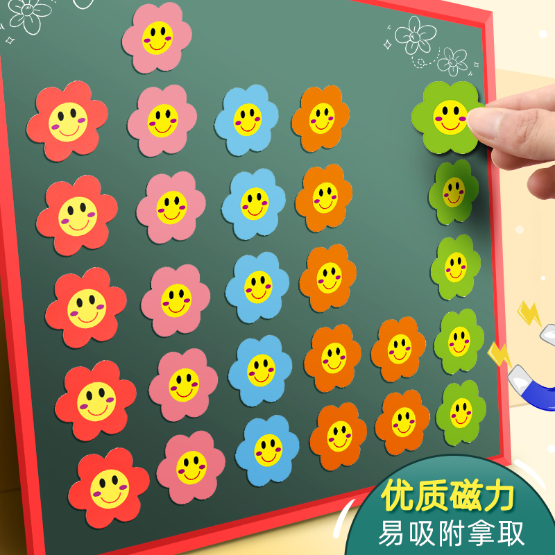 花朵磁力贴软磁黑板贴学生班级评比栏磁性贴大号太阳花笑脸小红花奖励表扬磁贴幼儿园白板教学教具磁铁冰箱贴