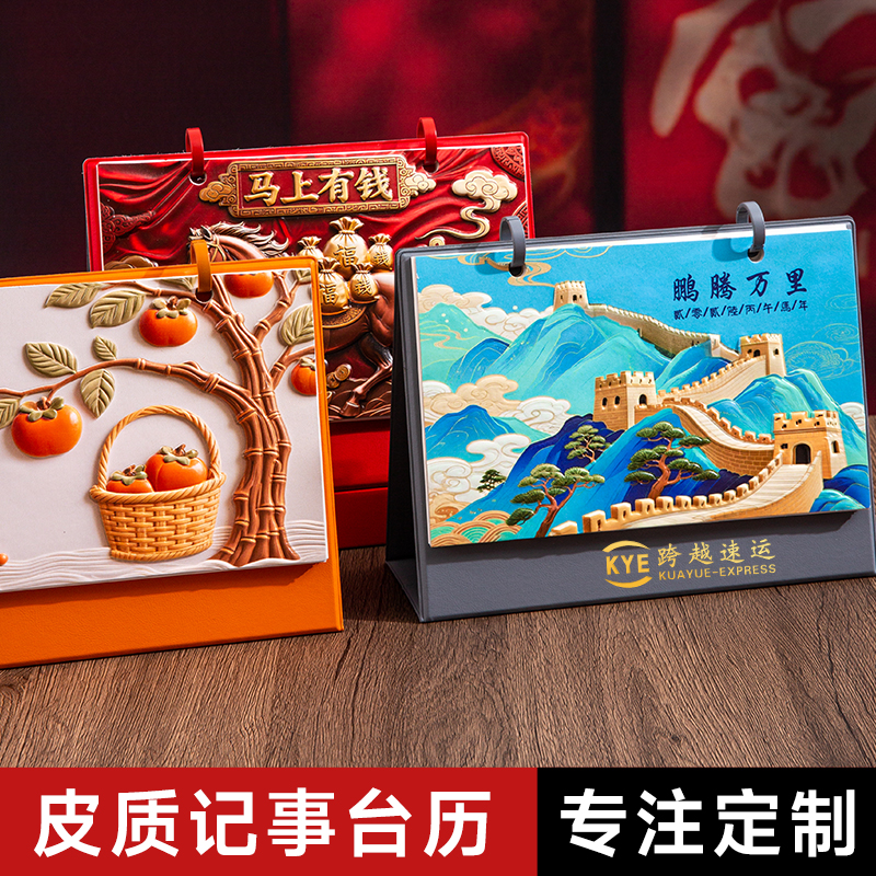 2026年新款台历定制金属双环创意台历精致简约皮架马年日历本计划打卡年历月历商务办公送礼公司企业来图定制