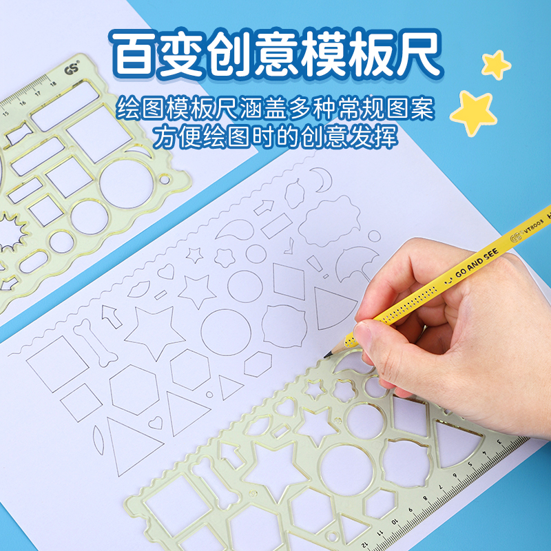 中华好学生卡通小蜜蜂透明模板DIY直尺三角尺量角器塑料套尺文具各种图形手抄报绘画涂色幼儿园小学生手帐