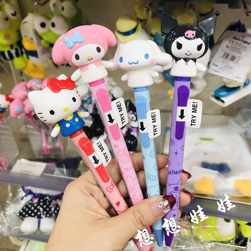 现货日本三丽鸥kitty美乐蒂玉桂狗库洛米立体摆手公仔按动圆珠笔