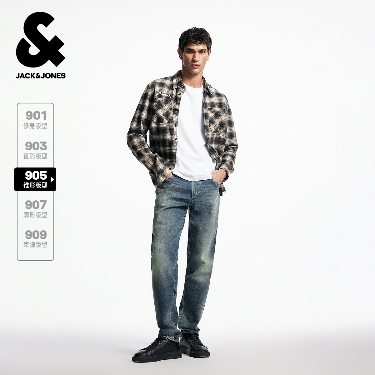 杰克琼斯秋冬季节牛仔裤长裤子水洗猫须设计舒适百搭潮流下装