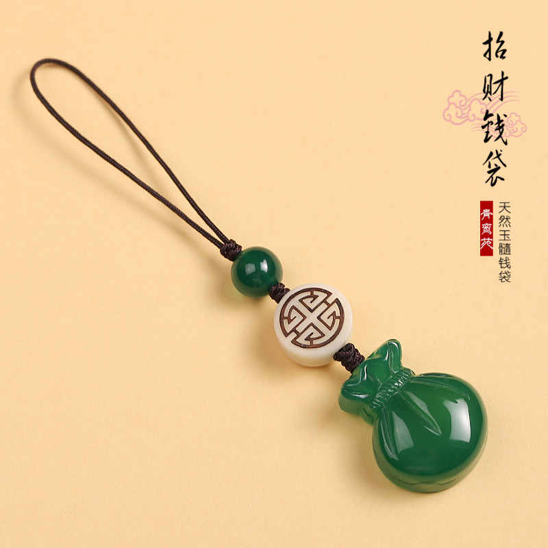 招财钱袋挂件 天然玉髓玉石手机链吊坠文艺风汽车钥匙扣U盘挂绳女