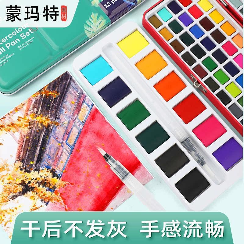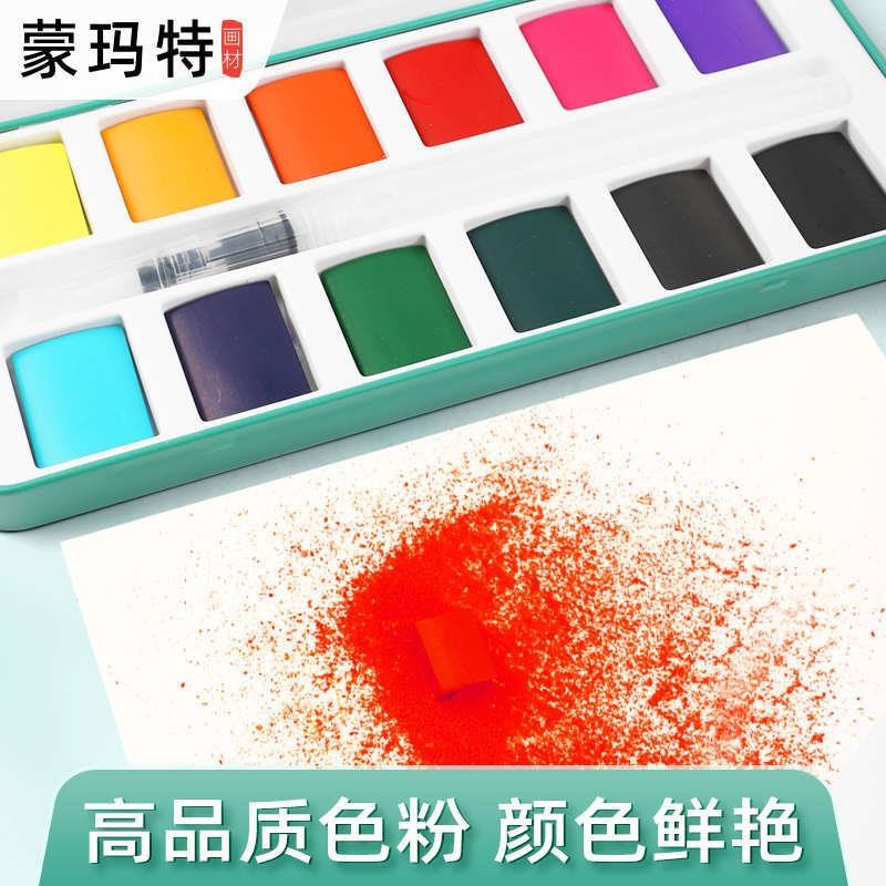 蒙玛特 固体水彩大色块12色固体颜料套装初学者学生美术绘画