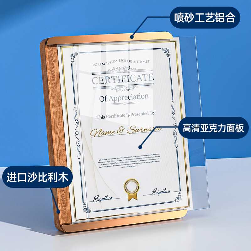 荣誉证书a4奖状专利授权书结业毕业颁奖水晶玻璃裱框聘书外壳高档证件书亚克力相框摆台定制打印企业奖杯奖牌