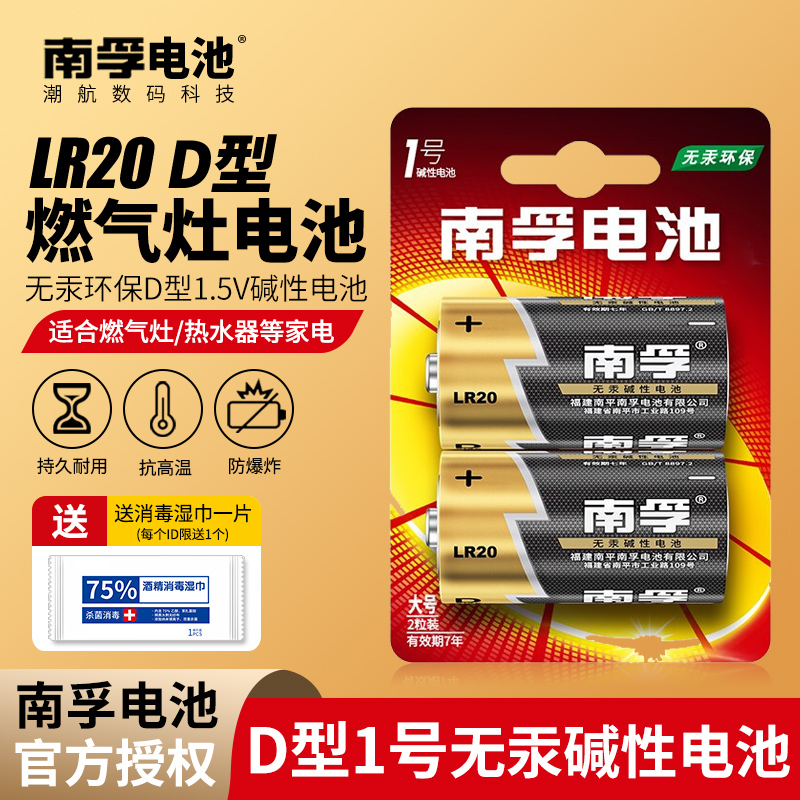 南孚1号电池一号LR20大号警示棒地位锁碱性D号1.5v煤气灶燃气灶天然气灶热水器不可充电1号R20正品批发干电池