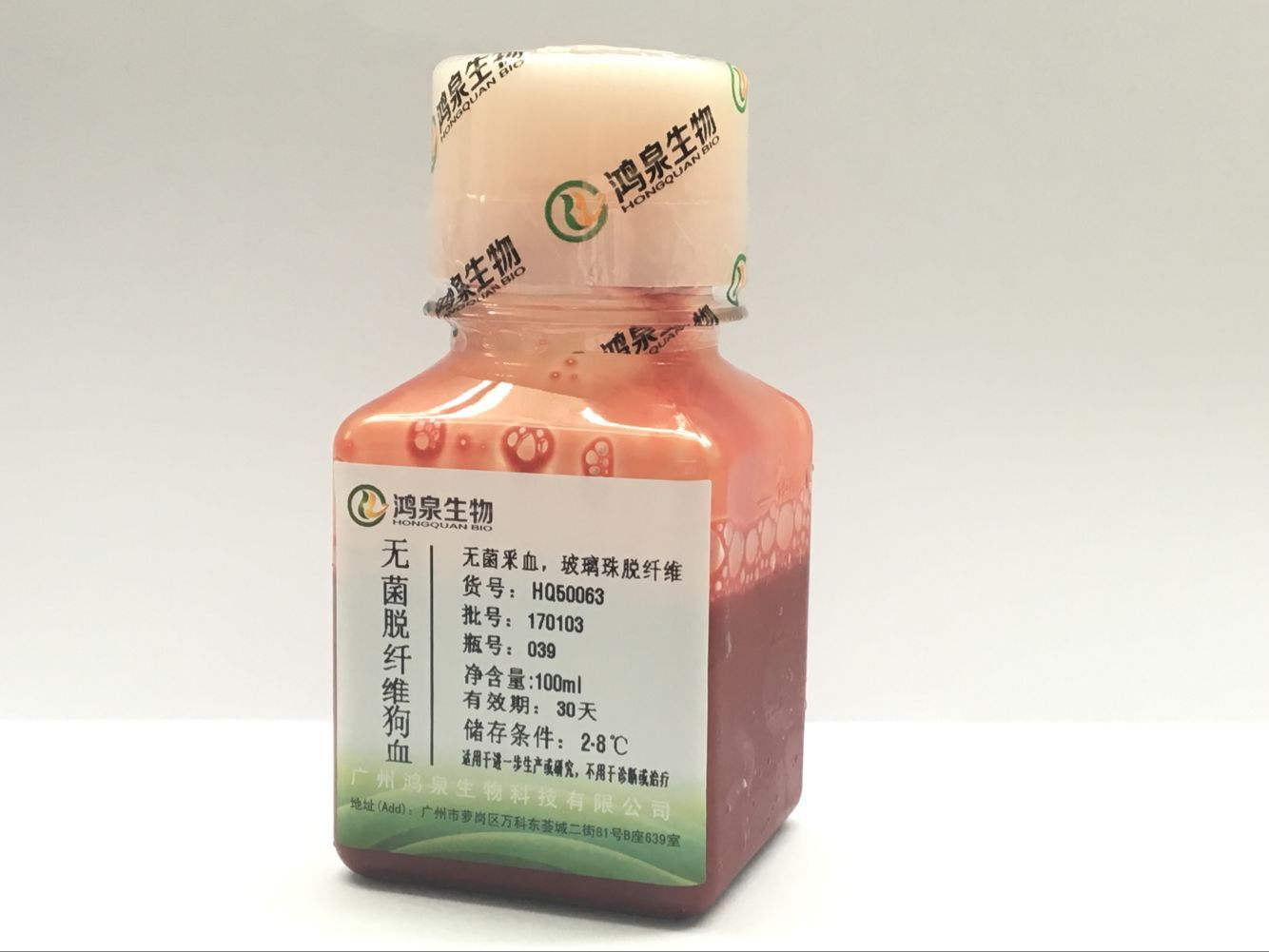无菌脱纤维狗血100ml鸿泉生物新鲜细菌培养科研实验生化试剂