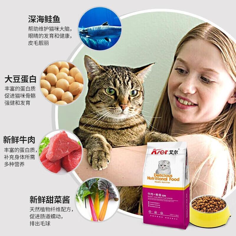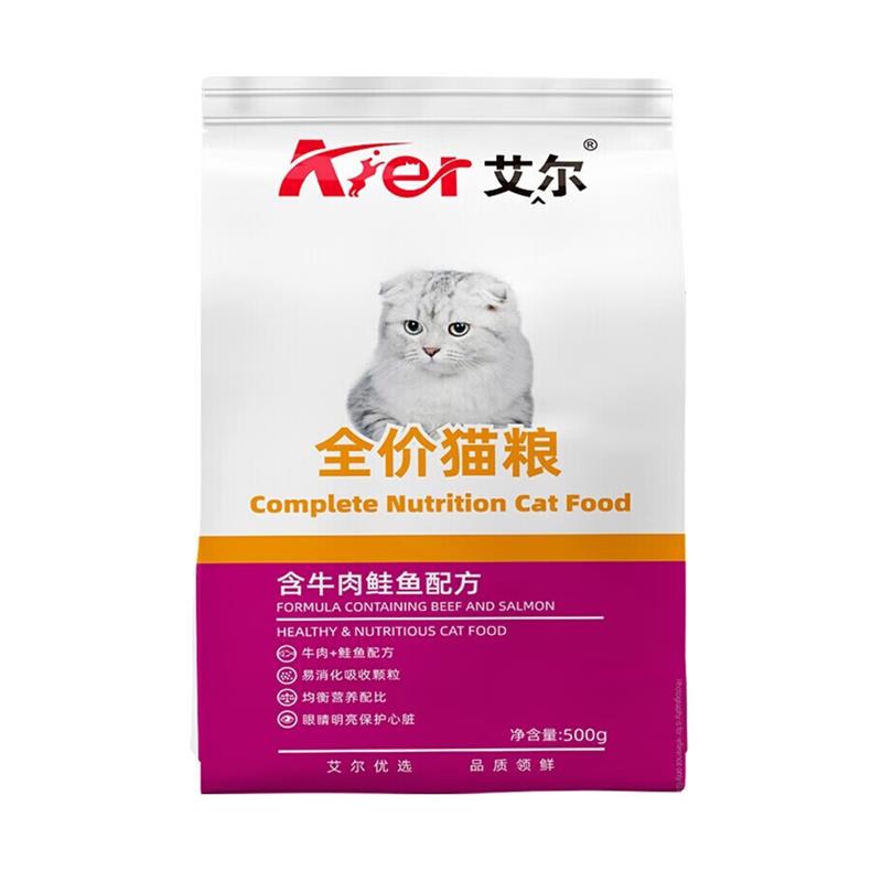 猫粮 牛肉鲑鱼配方 成猫 幼猫 全阶段通用粮 500g 500g*5