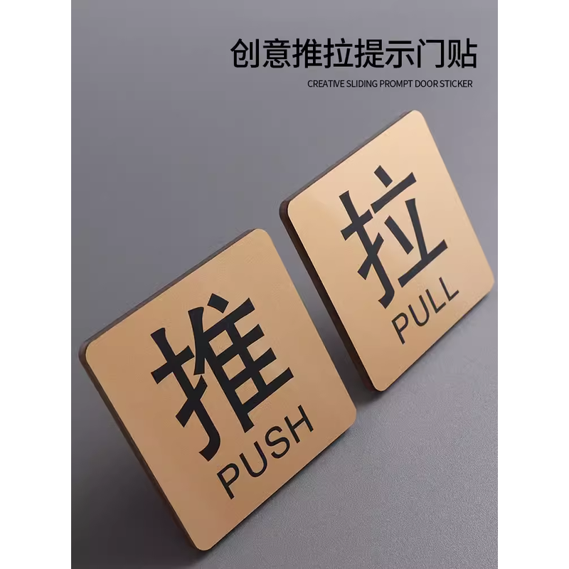 亚克力玻璃门贴温馨提示牌定制左右移门门牌贴纸玻璃门贴拉字标识牌子订制创意个性墙贴标志标示指示标牌定做