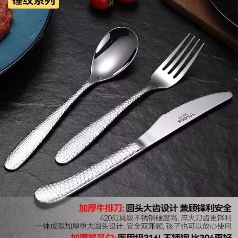 304不锈钢西餐餐具刀叉全套刀叉勺三件套牛排盘子套装家用316实用