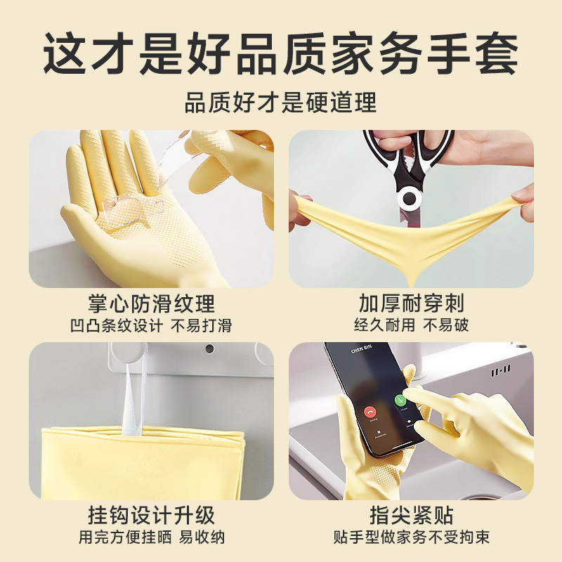 加厚橡胶牛筋乳胶手套家务女手套洗碗清洁家用干活洗衣服乳胶耐磨