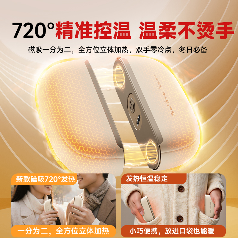 3c认证】双磁吸二合一暖手宝2025新款充电款分离手握式自发热女生礼物迷你小随身携带防爆儿童学生米分体usb
