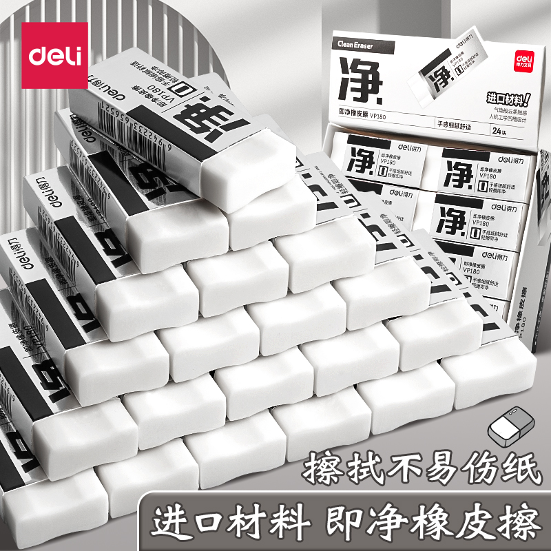得力即净橡皮擦小学生专用无屑超干净不留痕高颜值幼儿园儿童安全无异味象皮擦字成条素描美术绘图考试橡皮笔