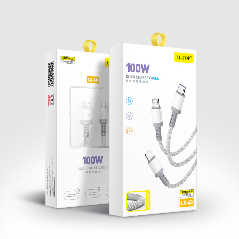 抗弯折100W大功率编织尼龙数据线适用小米VIVO OPPO iphone13 14 12安卓手机6A加粗Type-C超级快充闪充充电线