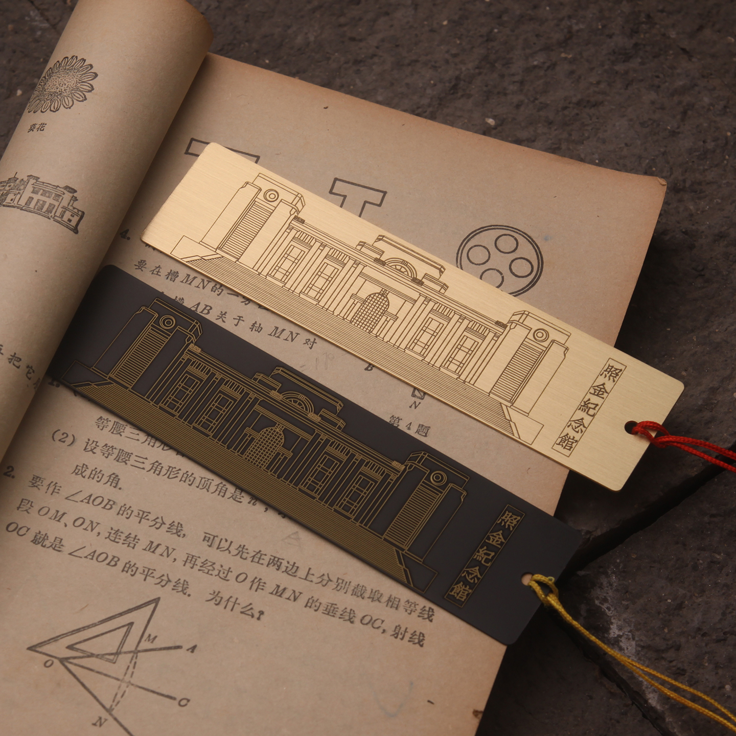 陕甘边革命根据地照金纪念馆碑黄铜书签纪念品定制刻LOGO铜川1958
