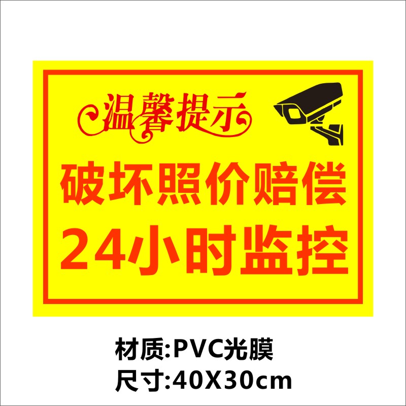 破坏照价赔偿告知牌标识标志牌24小时监控PVC不干胶提示牌警告牌B