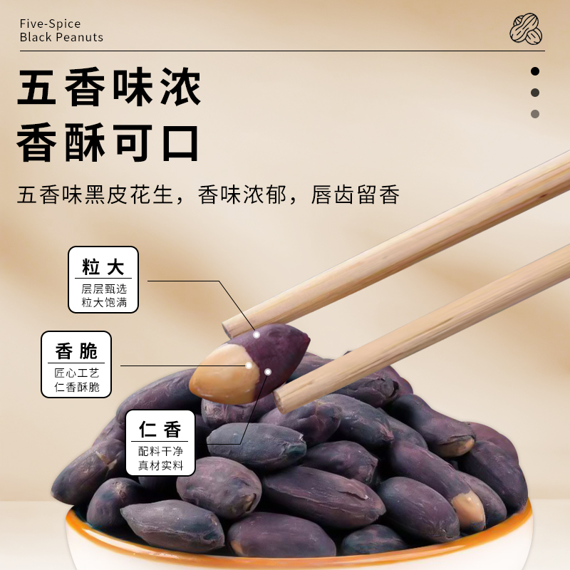 五香黑花生即食东北新货农家去壳熟黑花生富含花青素下酒菜小零食