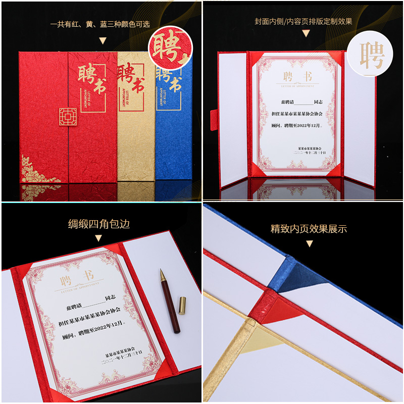 荣誉证书外壳聘书任命书聘任书高档证书套a4带打印奖状封面定制定做获奖优秀员工毕业结业会员证