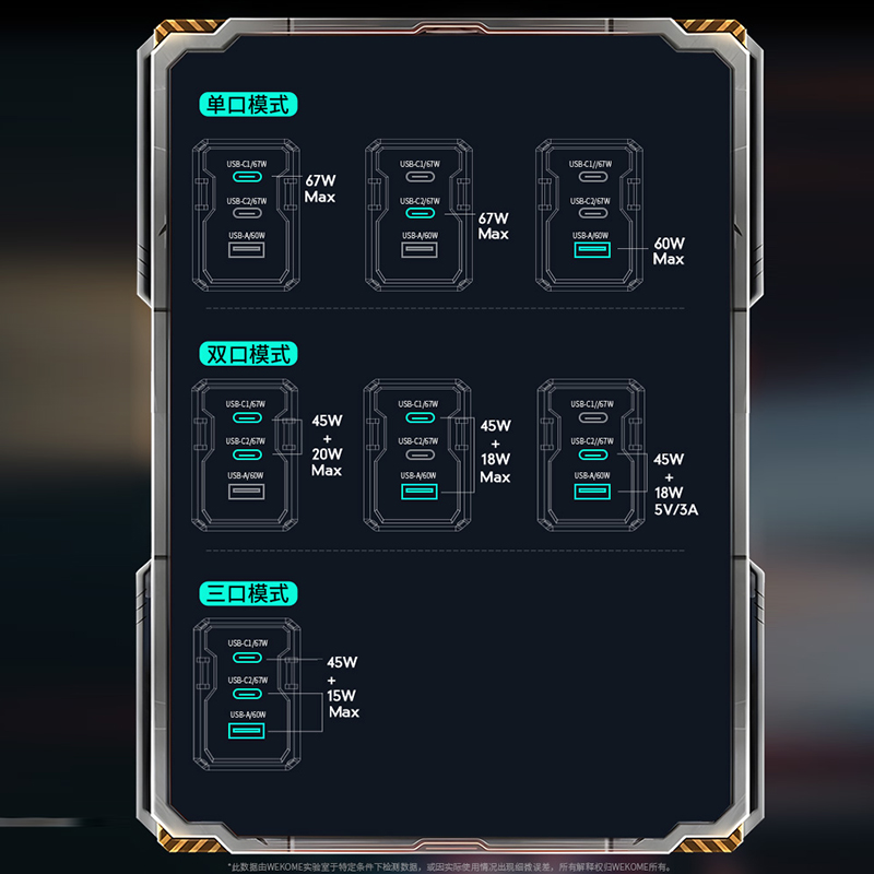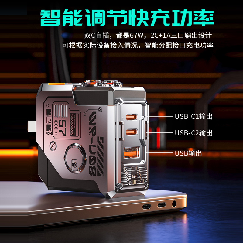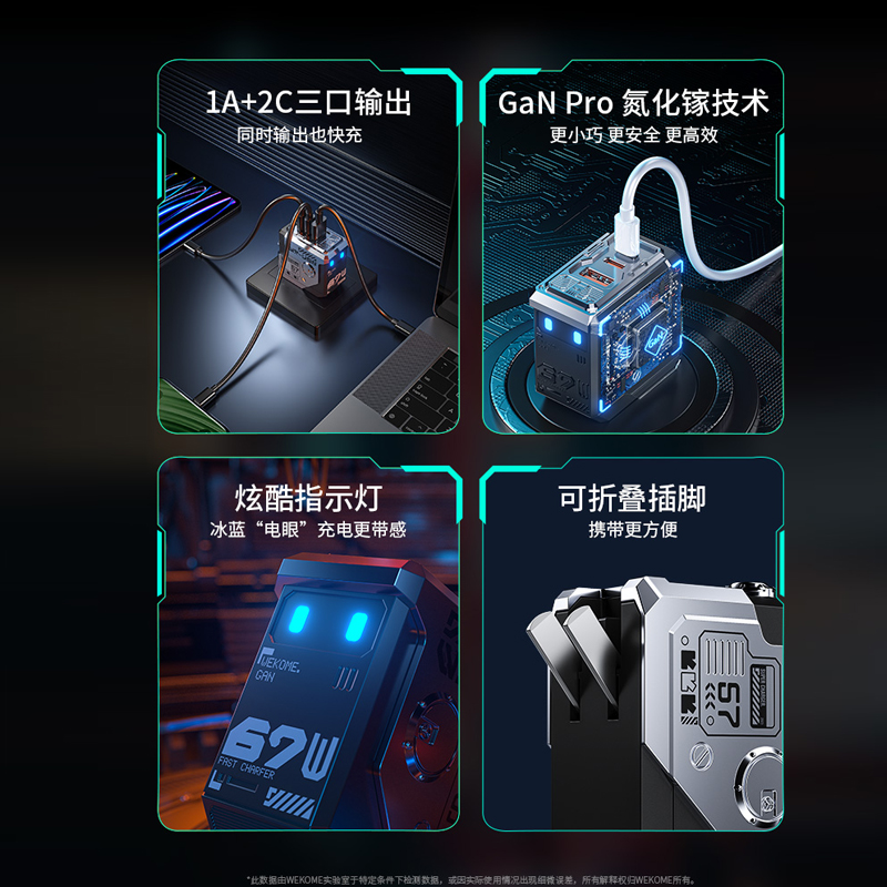 WEKOME机甲氮化镓67W充电器多口适用华为苹果16充电头iPhone15promax快充头笔记本电脑65W闪充Typec插头三口