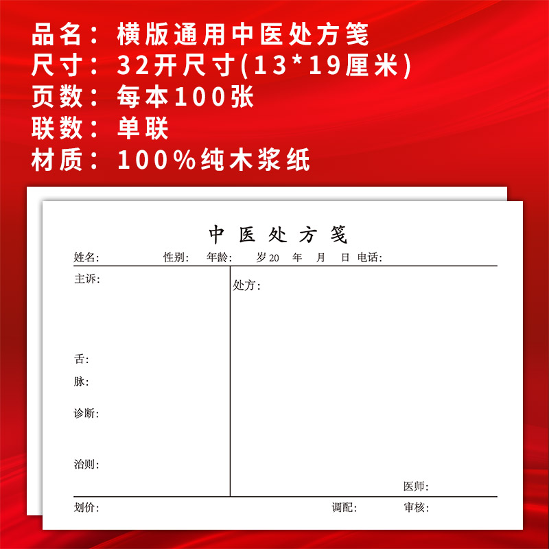 中医处方笺32开中医中药门诊处方100加厚处方单定制包邮设计定做