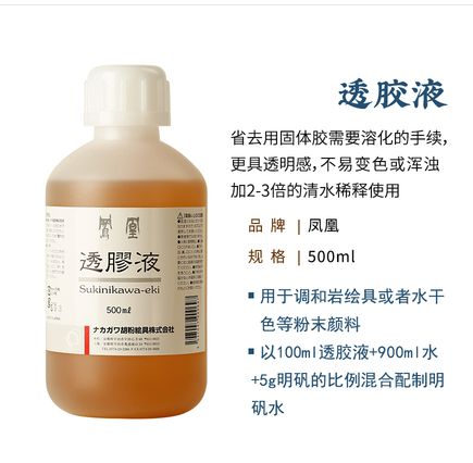 日本进口凤凰250ml透矾水胶矾水 透胶水岩彩矿物质粉状调胶岩彩画