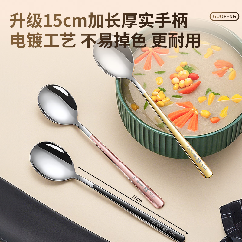 316不锈钢勺子家用汤匙长柄儿童吃饭甜品西瓜调羹食用不锈钢汤勺