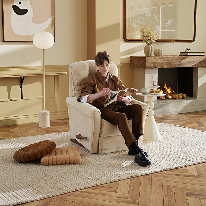 【新品】LAZBOY乐至宝进口沙发奶油风布艺雪尼尔懒人单椅785曲奇