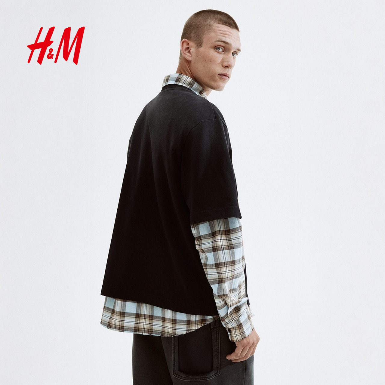 HM男装女装T恤2025夏季新款重磅休闲简约大廓形圆领上衣1262357