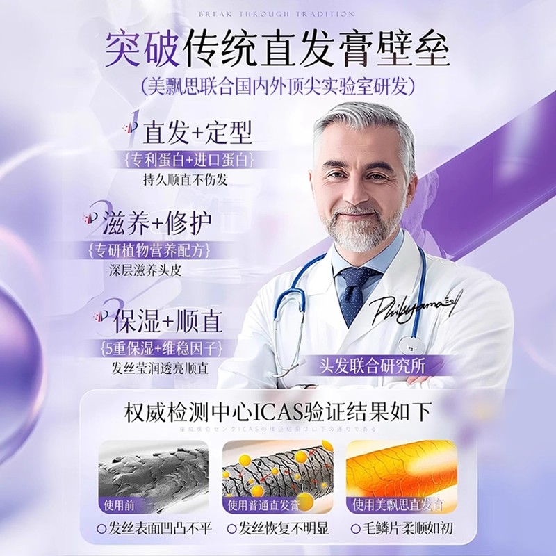 蛋白矫正直发膏免拉家用头发直顺软化剂柔顺剂头发改善毛躁修复