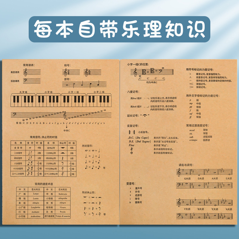 16k五线谱本音乐生专用乐谱本学生练琴音乐笔记本子牛皮标准钢琴乐理音符音谱本不透墨大间距宽距简谱册子